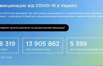 Найбільшу кількість щеплень за 5 січня 2021 року було проведено у Дніпропетровській області – 10 727 щеплень, а за весь період вакцинальної кампанії – у м.Києві – 3 460 385 щеплення.