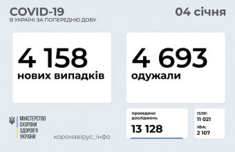 В Україні станом на ранок 4 січня 2021 року — 1 мільйон 078 тисяч 251 людина були інфіковані коронавірусом COVID-19.