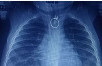 Його турбувала постійна слинотеча, з’явилися порушення дихання та задишка. Малюк не міг нічого ковтати. Тож вони одразу вирушили до місцевої лікарні у Новому Роздолі. Там лікарі зробили малюкові рентген, на якому побачили сторонній предмет. Дитину негайно каретою швидкої допомоги доставили до Центру дитячої медицини.