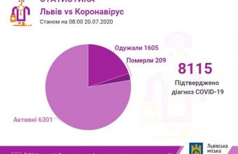 За її словами, станом на 08.00 год у Львові та на Львівщині підтверджено 8115 випадків інфікування коронавірусом, з них 209 — летальні.