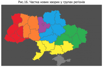 Зростання кількості нових випадків відбувається в усіх регіонах України, крім Івано-Франківської та Закарпатської областей.