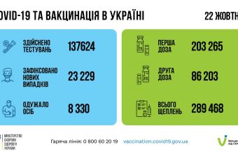За добу вакциновано майже 290 тис. українців. Учора, 22 жовтня, у Львові від коронавірусу вакцинували 8257 осіб, з них другу дозу вакцини отримали 2370 осіб.
