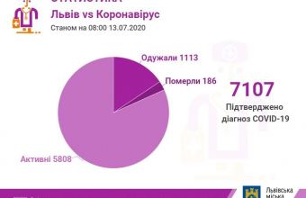 Як повідомила Галина Слічна, заступниця міського голови Львова та керівниця міського штабу з протидії коронавірусу, станом на 08.00 год у Львові та на Львівщині підтверджено 7107 випадків інфікування коронавірусом, з них 186 — летальні. За вчорашню добу лабораторні центри провели 548 ПЛР-тестів. Відтак, 104 — позитивні. Серед них львів`ян — 51.