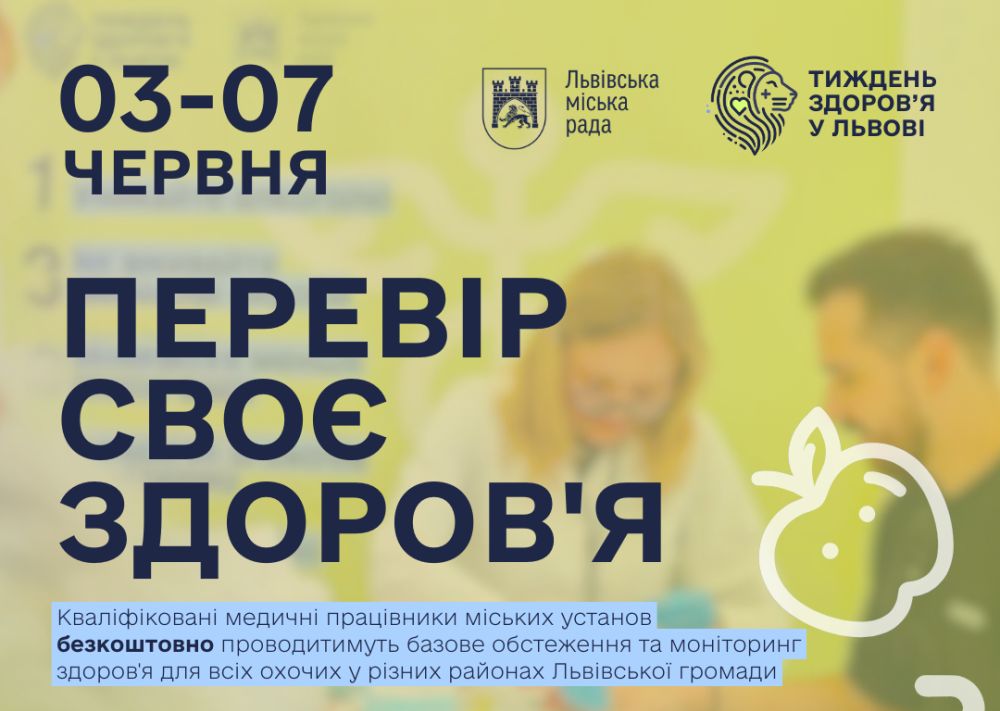 З 3 до 7 червня у Львові триватиме традиційна загальноміська кампанія «Тиждень здоров’я», під час якої мешканці громади зможуть безплатно пройти базові обстеження та отримати консультації фахівців просто неба.