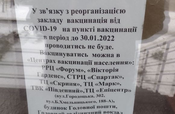 У тамтешньому поліклінічному відділенні обіцяли, що з 30 січня відновлять щеплення, але сьогодні попередили, що це станеться не раніше, ніж наступного тижня. Світлина, що нижче, нагадує про те, що тут раніше вакцинували пацієнтів. За даними YouControl, діяльність Третьої міської комунальної лікарні у Львові припинена, а КНП "3 територіальне медичне об'єднання м.Львів" ще не зареєстроване.