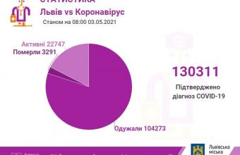 За оперативними даними, станом на 3 травня у Львівській області зареєстровано 130311 підтверджених випадків захворювання на COVID-19, з них у Львові – 63903, за останню добу - 94 випадки, з них у Львові - 69.