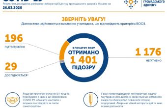 Підтверджено 196 випадків COVID-19 (станом на 22:00, 26 березня).