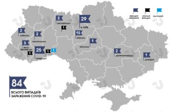 В Україні, станом на 10:00 двадцять четвертого березня, зафіксували 84 випадки коронавірусної хвороби.