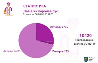 Як повідомила Галина Слічна, заступниця міського голови Львова та керівниця міського штабу з протидії коронавірусу, станом на 08.00 год у Львові та на Львівщині підтверджено 10420 випадків інфікування коронавірусом, з них 283 — летальні. За вчорашню добу лабораторні центри провели 1458 ПЛР-тестів. 197 — позитивні. Серед них львів`ян — 48.
