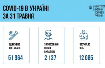 1 червня 2021 року в Україні зафіксовано 2 137 нових випадків захворювань на COVID-19. Серед них - 91 дитина та 56 медпрацівників.