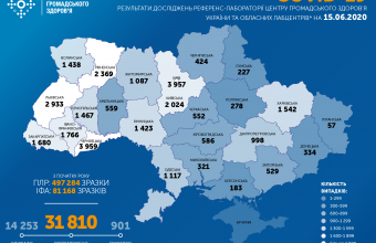 .Усього в Україні 497 284 зразки досліджено методом ПЛР та 81 168 зразків — методом ІФА.