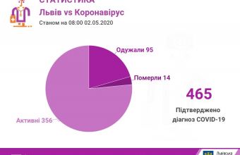 Як повідомила Галина Слічна, заступниця міського голови Львова та керівниця міського штабу з протидії коронавірусу, станом на 08.00 год 2 травня у Львові та на Львівщині підтверджено 465 випадків інфікування коронавірусом, з них 14 — летальні.
