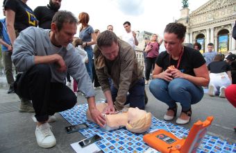 20 досвідчених тренерів навчали усіх охочих надавати домедичну допомогу, яка рятує життя людей у перші секунди при раптовій зупинці серця.