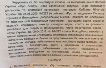 Чиновник Львівської міськради зобов'язала керівників шкіл інформувати про кошти