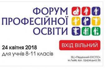 Про це повідомили сьогодні, 13 квітня, в прес-службі Львівської облдержадміністрації, де також розповіли: «Форум професійної освіти» спрямований допомогти та сприяти старшокласникам восьмих-одинадцятих класів з вибором власного покликання. У програмі форуму – виставкова зона для понад 35 освітніх закладів Львівщини; презентації, майстер-класи та тренінги; панельні дискусії фахівців у галузі освіти та науки; новели освітніх програм, вступної кампанії 2018-2019 років; можливість обрати освітній заклад та познайомитись із викладачами та їх керівництвом; ярмарок вакансій та ще багато усього цікавого.