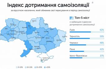 Найбільше дотримуть карантину також користувачі Київстар у Тернополі, Черкасах, Рівному Івано-Франківську.