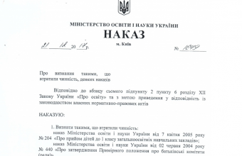 Згідно із підписаним міністром наказом, розпорядження від 2 червня 2004 року №440 «Про затвердження примірного положення про батьківські комітети (ради)» втрачає свою чинність. Скасування діяльності батьківського комітету, а також зміни до порядку прийому дітей у 1 класи загальноосвітніх навчальних закладів ухвалені відповідно до нового закону « Про освіту».