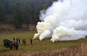 «Національні гвардійці провели планові тренування з використання спецзасобів хімічного захисту. На Львівщині впродовж двох днів бійці Національної гвардії вдосконалювали навички при постановці димових завіс, веденні бою, та охорони важливих об’єктів. За легендою навчань, умовний противник намагався атакувати з повітря та силами ДРГ (диверсійно-розвідувальної групи. – «ЩЛ»)».