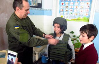 Учні уважно слухали розповіді Олега Лернера, причому їм було цікаво все. Які завдання виконували нацгвардійці, як жили, де спали, чим харчувались. Школярам особливо сподобались позивні військовослужбовців, якими вони користувались в зоні проведення АТО. Ще з більшою зацікавленістю учні приміряли бронежилет та каску.