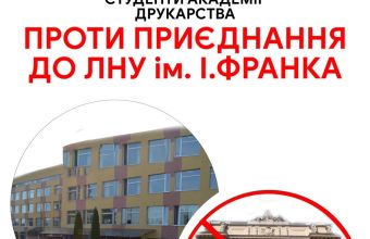 У суботу, 12 листопада, студенти Української академії друкарства вийдуть на площу у Львові з протестом проти приєднання їхнього вишу до Львівського національного університету імені Івана Франка.