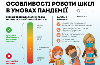 МОЗ рекомендує максимально обмежити пересування учнів між навчальними класами, використовувати всі входи й виходи та розробити спеціальні маршрути для уникнення скупчень дітей. Також рекомендовано проводити уроки з інтервалом у 15 хвилин.