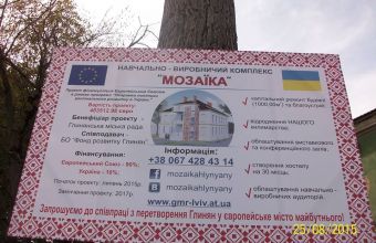 У місті Глиняни в Львівській області успішно відбулась презентація проекту ЄС «Створення багатоцільового навчально-виробничого комплексу (НВК) трансформенного типу «Мозаїка». Цей проект виконується в рамках Програми ЄС «Підтримка політики регіонального розвитку в Україні».