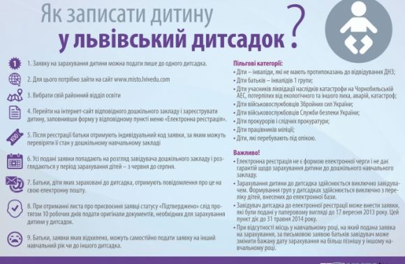 «Сьогодні на виконавчому комітеті затвердили рішення про електронну систему реєстрації дітей дошкільного віку в дошкільних навчальних закладах у Львові – беручи до уваги лист міністерства освіти і науки, молоді та «Про Методичні рекомендації щодо створення уніфікованої системи електронної реєстрації дітей дошкільного віку», з метою забезпечення чіткості і прозорості зарахування дітей дошкільного віку до дошкільних навчальних закладів Львова, визначення послідовності набору дітей дошкільного віку з подальшим обліком у дошкільних навчальних закладах Львова», – повідомили сьогодні, 5 липня, в прес-службі міськради, де також цитують сказане з цього приводу керівником управління освіти ЛМР Зоряною Хонько: