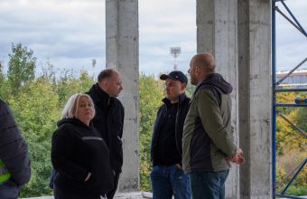 Любомир Зубач зазначив, що закінчено три етапи монолітних робіт – вже є всі поверхи корпусу, готове укриття на 250 квадратних метрів, басейн розміром 25 м на 10 м і великий спортзал над ним. Далі на черзі — інженерні мережі (вода, каналізація, електрика), покрівля, скління вікон і завезення землі під доброустрій майбутнього стадіону.