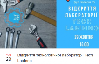 У вівторок, 29 жовтня, о 15.00 на вулиці Академіка Колесси (№2) розпочнеться відкриття технологічної лабораторії «Tech Lablnno», яка стане централізованим місцем інновацій для навчання, обміну досвідом у реалізації стартапів, створення умов прототипування та нових винаходів у форматі «FabLab».