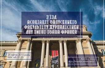 «З’їзд Асоціації випускників факультету журналістики Львівського національного університету імені Івана Франка відбудеться в суботу, 25 квітня 2015 року об 11.00 в актовому залі університету. Членом Асоціації може стати будь-який випускник, або викладач факультету, який визнає Статут, Кодекс честі члена асоціації.