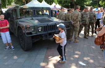 Американські солдати та офіцери виставили для огляду у центрі міста поблизу Оперного театру власну військову техніку – бронеавтомобілі «Humvee». Та найголовніше – те, щобудь-хто з львів’ян та гостей міста міг поспілкуватись із представниками військової тренувальної місії.