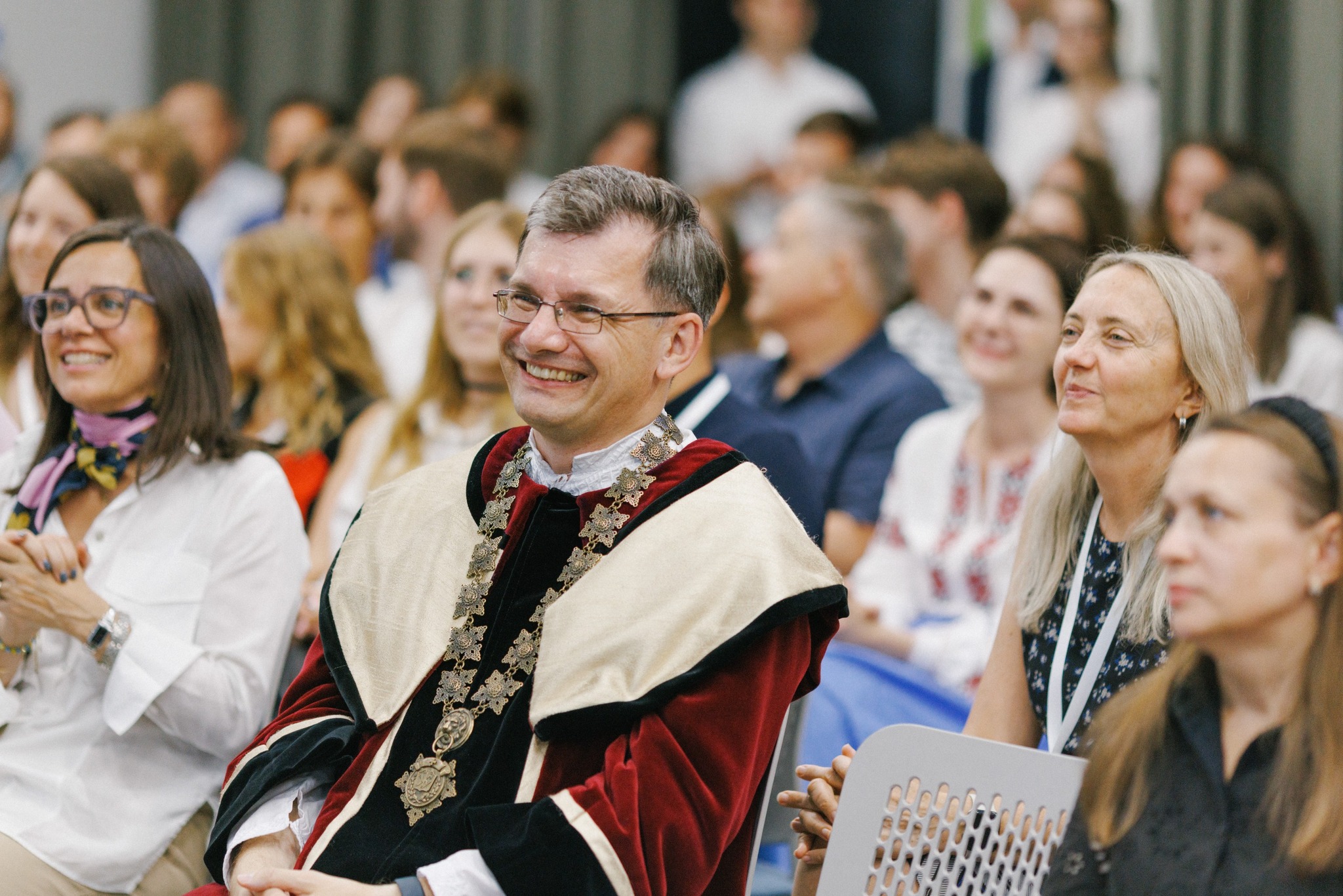 Ректор УКУ вдягнув мантію на декана нового факультету УКУ Світлану Хилюк.
