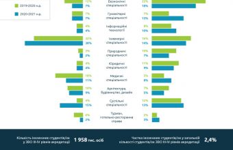 Порівняно з 2019-2020 н.р. випускників за економічним напрямом стало менше (із 22% до 18%), водночас збільшилась кількість випускників за гуманітарним напрямом (із 7% до 13%).