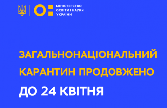 Загальнонаціональний карантин в усіх закладах освіти, який мав тривати до 3 квітня включно, продовжено на 21 день – до 24 квітня включно.