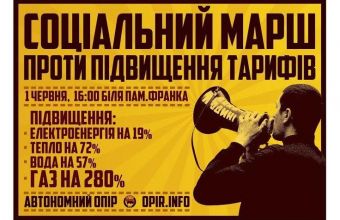 В «Автономному опорі» запевняють, що «1 червня у Львові буде «Соціальний марш проти підвищення тарифів», а також закликають: «Не плати за комуналку!».