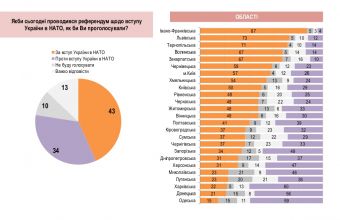 Опитування соціологічної групи «Рейтинг» показало, що за останні три роки кількість прихильників вступу до НАТО зросла у півтора рази. 43% підтримують вступ до Альянсу, 34% – проти цього. Ще майже чверть або ж не визначилися, або ж не приймали б участі у референдумі у разі його проведення.