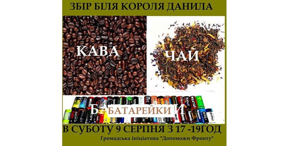 9 серпня зі 17.00 до 19.00 у Львові біля пам’ятника королю Данилу – збір кави, чаю й батарейок військовим