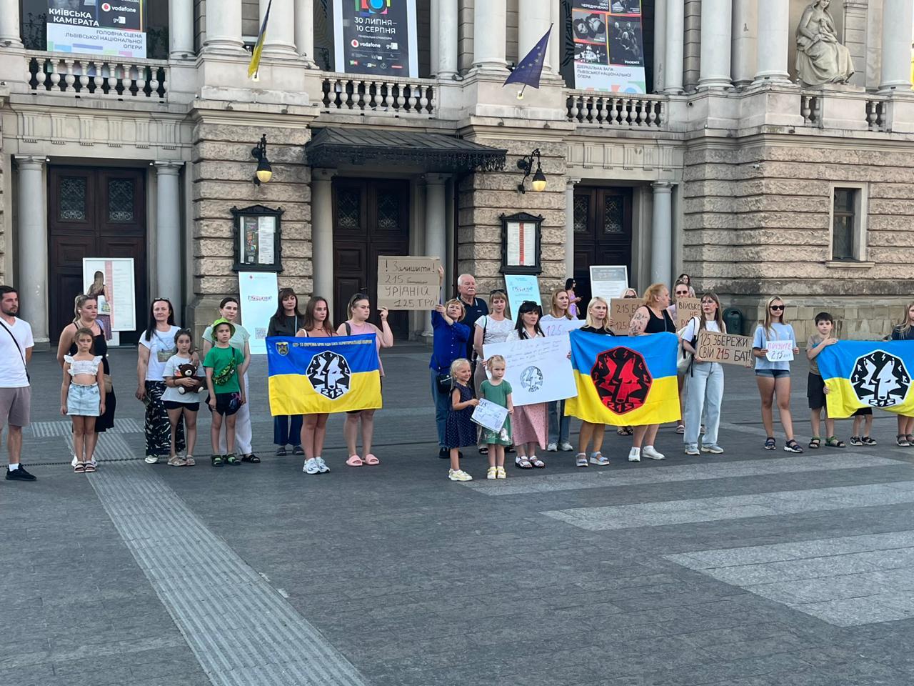 Сьогодні, 25 липня, у центрі Львова відбулася мирна акція протесту проти переведення 215-го батальйону зі 125-ої окремої бригади до 102-ої окремої бригади ТрО. На акцію протесту вийшли рідні бійців.