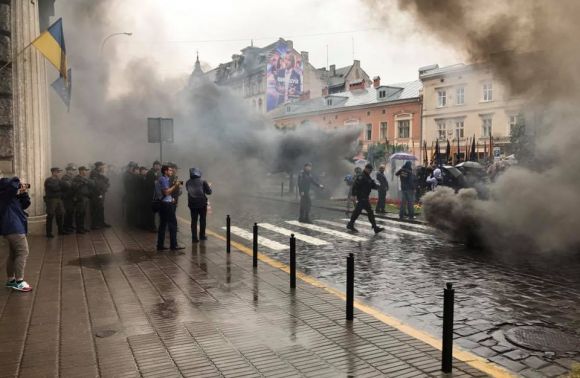 Активісти партії «Національний корпус» протестують проти затримань їх соратників.