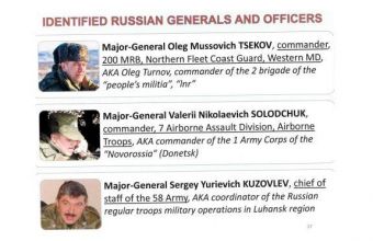 Таким чином видання оприлюднило презентацію СБУ, яка була передана Білому Дому, Держдепартаменту та Розвідці США минулого місяця. Зокрема, у презентації зазначається, що ключову роль в окупації територій відіграють п’ять російських генералів і російський полковник.