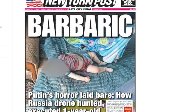 Американське видання New York Post, відоме своєю підтримкою Республіканської партії, у випуску за 11 липня розмістило на обкладинці фото тіла однорічного хлопчика, який загинув на Херсонщині внаслідок атаки російського дрона у селі Правдине.