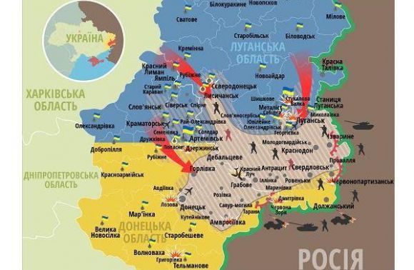 Кроме того, ведя активную разведку в сторону Антрацит-Ровеньки, эта группа украинских войск обеспечила так же, как и их коллеги в районе Саур-Могилы, возможность нанесения ряда авиационных и артиллерийско-ракетных ударов по кучкующимся тут с целью «генерального контр-удара» формированиям ватозверей. Кстати, эти удары и последовали в реальности. Сначала в районе Снежного, по резервам группировки, которая продолжала бодаться с правым флангом центральной группы украинских войск из состава Амвросиевской группировки по рубежу Юго-западные окраины Тореза-Мануйловка-Саур-Могила, а в последствии и по основному «отстойнику» и «накопителю» гуманитарной бронетехники и артиллерии вато-формирований – району Антрацит-Ровеньки.
