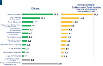 Ерозія довіри до влади: Попри стабільний президентський рейтинг самого Володимира Зеленського (який у серпні сягав 35%), рейтинг його партії «Слуга народу» поступово знижувався на фоні втоми від війни та корупційних скандалів.