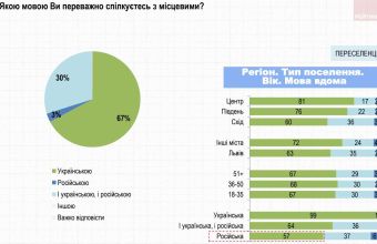 Попри те, що 80% тих, хто недавно приїхав на Львівщину, спілкуються у побуті двома мовами, або лише російською, більшість з них (67%) намагаються з місцевими спілкуватися тільки українською (серед російськомовних таких – 57%, двомовних – 64%).