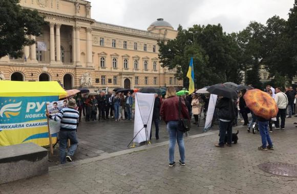 «Біля університету імені Івана Франка – акція на підтримку Міхеіла Саакашвілі», – повідомили сьогодні, 6 вересня, на сторінці громадської організації «Варта 1» в інтернет-мережі «Facebook», де також опублікували фото з місця події. Як інформував «ЩЛ», міський голова Львова запевнив, що Саакашвілі зустрінуть у Краковці, а він чекатиме на позбавленого його від українського паспорта у Львові «на каві», натомість під стінами Львівської міськради розпочався мітинг проти Саакашвілі.