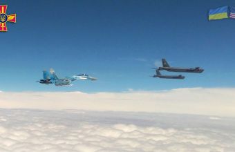 Сьогодні, 23 вересня пара В-52H вчергове увійшла в повітряний простір України. Стратегічні бомбардувальники Повітряних Сил США супроводжують винищувачі Су-27 та МіГ-29 бригад тактичної авіації Повітряних Сил ЗС України.