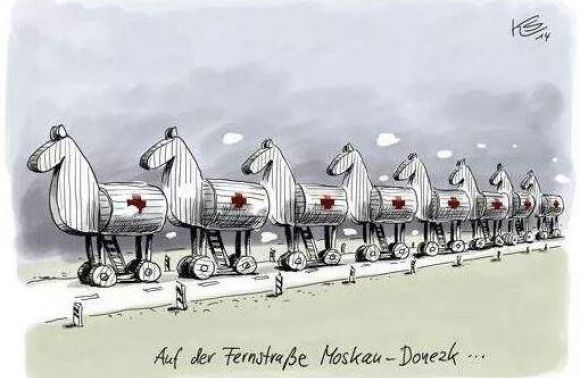 Раніше в РНБО заявили, що «гуманітарний конвой» з Росії досі перебуває на території РФ у м.Донецьк, документів на нього не надають».