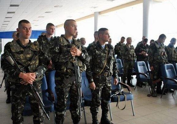 Десантники 80-ї окремої аеромобільної бригади зі Львова на території аеропорту Луганська