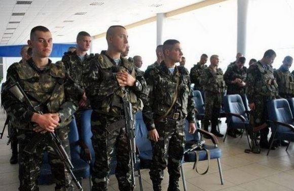 Десантники 80-ї окремої аеромобільної бригади зі Львова на території аеропорту Луганська