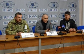 Разом з Ярошем прес-конференцію давали його побратими Андрій Шараскін та Сергій Ільницький.